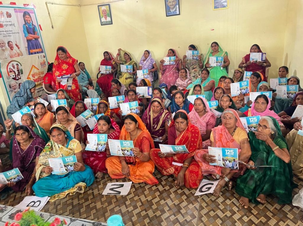 दुर्ग/जिला पंचायत दुर्ग के सीईओ बजरंग कुमार दुबे के मार्गदर्शन में जिला पंचायत दुर्ग जनपद पंचायत पाटन के अंतर्गत ग्राम पंचायत ढौर में दीवार लेखन, रैली एवं जन चौपाल, पंपलेट वितरण कार्य किया गया। ग्राम पंचायत ढौर में शासन की जनकल्याणकारी पहल से ग्रामीणों को अवगत कराने के उद्देश्य से इस कार्यक्रम का आयोजन किया गया। कार्यक्रम के माध्यम से ग्रामीणों को विकसित भारत जी-राम जी योजना एवं एक्ट, 2025 का पंपलेट वितरण कर जानकारी साझा की गई। प्राप्त जानकारी के अनुसार कार्यक्रम के अंतर्गत ग्राम भ्रमण करते हुए प्रभात रैली निकाली गई, जिसमें बड़ी संख्या में ग्रामीणजन, पंचायत प्रतिनिधि एवं हितग्राही उपस्थित रहे। जन चौपाल मे अरदीप ढीढी, सहायक परियोजना अधिकारी (मनरेगा), जिला पंचायत दुर्ग ने ग्रामीणों को संबोधित करते हुए विकसित भारत जी-राम जी एक्ट, 2025 के प्रमुख प्रावधानों की विस्तार से जानकारी दी।