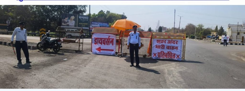 इसी को दृष्टिगत रखते हुए शहर में यातायात व्यवस्था को सुगम एवं सुरक्षित बनाए रखने के लिए पूर्व से निर्मित बायपास मार्ग से भारी वाहनों का डायवर्सन सुनिश्चित किया गया है। सीआईटी कट चौक और ट्रांसपोर्ट नगर तिराहा पर यातायात व्यवस्था सुचारू रूप से चालू रखने के लिए पॉइंट ड्यूटी पर जवान तैनात किया गया है साथ ही डायवर्सन फ्लेक्स लगाया गया है यातायात पुलिस की भारी वाहन चालकों से अपील प्रातः 09ः00 बजे से रात्रि 09ः00 बजे तक भारी वाहन चालक शहर में प्रवेश न करें। आवागमन हेतु ट्रांसपोर्ट नगर एवं सीआईटी चौक से बायपास मार्ग का उपयोग करें। बायपास मार्ग में ओवरटेक न करें। मार्ग में वाहन खड़ा न करें। आपात स्थिति में ही वाहन फ्लाईओवर के नीचे निर्धारित स्थान पर खड़ा करें।