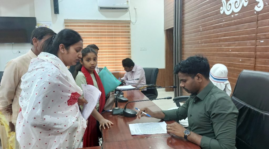 दुर्ग/जिला कार्यालय के सभाकक्ष में कलेक्टर अभिजीत सिंह के निर्देशानुसार डिप्टी कलेक्टर हितेश पिस्दा एवं उत्तम ध्रुव ने जनदर्शन कार्यक्रम में पहुंचे जनसामान्य लोगों से मुलाकात कर उनकी समस्याएं सुनी। उन्होंने जनदर्शन में पहुंचे सभी लोगों की समस्याओं को गंभीरता से सुना और समुचित समाधान एवं निराकरण करने संबंधित विभागों को शीघ्र कार्यवाही कर आवश्यक पहल करने को कहा। जनदर्शन में डिप्टी कलेक्टर श्री हितेश पिस्दा भी उपस्थित थे। जनदर्शन में अवैध कब्जा, आवासीय पट्टा, प्रधानमंत्री आवास, भूमि सीमांकन कराने, सीसी रोड निर्माण, ऋण पुस्तिका सुधार, आर्थिक सहायता राशि दिलाने सहित विभिन्न मांगों एवं समस्याओं से संबंधित आज 136 आवेदन प्राप्त हुए।