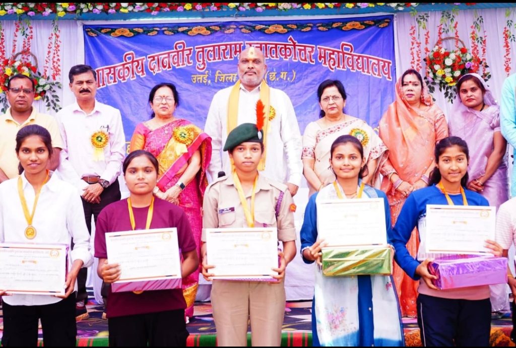 दुर्ग/दुर्ग ग्रामीण विधायक ललित चंद्राकर शासकीय दानवीर तुलाराम स्नातकोत्तर महाविद्यालय में आयोजित वार्षिक उत्सव एवं पुरस्कार वितरण समारोह में हुए शामिल