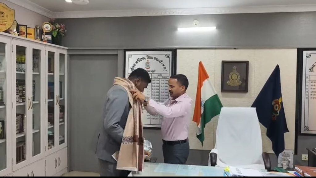 स्थानीय युवक की इस उपलब्धि पर पुलिस अधीक्षक धमतरी सूरज सिंह परिहार द्वारा डायमंड सिंह ध्रुव को SP कार्यालय में शाल एवं श्रीफल भेंट कर सम्मानित किया गया तथा उनके उज्ज्वल भविष्य की कामना की गई। इस अवसर पर पुलिस अधीक्षक धमतरी ने कहा कि यह पूरे जिले के लिए अत्यंत गौरव की बात है कि धमतरी जिले से एक आदिवासी युवा अभ्यर्थी ने संघ लोक सेवा आयोग जैसी प्रतिष्ठित परीक्षा में सफलता प्राप्त की है। यह उपलब्धि न केवल उनके परिवार बल्कि पूरे धमतरी जिले के लिए गर्व का विषय है। उन्होंने डायमंड सिंह ध्रुव से अपेक्षा व्यक्त की कि वे अपने अनुभव और संघर्ष की कहानी से आसपास के युवाओं को प्रेरित करें, ताकि अधिक से अधिक स्थानीय युवा UPSC जैसी प्रतियोगी परीक्षाओं में शामिल होकर उच्च पदों पर चयनित हों और समाज एवं देश की सेवा करें। इस अवसर पर सीएसपी अभिषेक चतुर्वेदी IPS, डायमंड सिंह ध्रुव, उनके बड़े पिता दिलीप सिंह ध्रुव एवं थाना प्रभारी मगरलोड उनि.लक्ष्मीकांत शुक्ला सहित पुलिस अधिकारी कर्मचारी उपस्थित थे जिन्होंने उनको बधाई व शुभकामनाएं दीं।