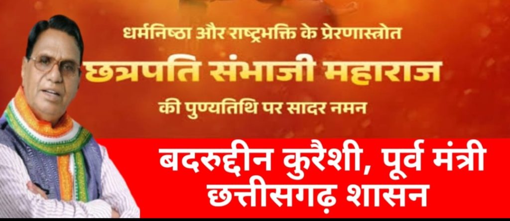 भिलाई/छत्तीसगढ़ के पूर्व मंत्री बदरुद्दीन कुरैशी ने कहा कि, आज छत्रपति संभाजी महाराज के बलिदान दिवस 11 मार्च पर धर्म और राष्ट्र की रक्षा के लिए उनके सर्वोच्च त्याग 1689 को नमन करते हुए एक भव्य श्रद्धांजलि अर्पित करता हूं शंभूराजे ने औरंगजेब की यात्राओं को सहकर भी धर्म नहीं बदला लिए इस वीर योद्धा के साहस को याद करें । संभाजी महाराज शिवाजी महाराज के पुत्र थे जिन्होंने 9 साल तक औरंगजेब की विशाल सेना का सामना किया 11 मार्च 1689 को भीषण यातनाएं आंखें फोड़ना, शरीर की खाल उतारना, झेलने के बाद भी उन्होंने मुगलों के सामने घुटने नहीं टेके और ना ही धर्म बदल जिसे आज भी धर्मवीर के रूप में याद किया जाता है । उनका बलिदान मराठों को और अधिक आक्रामक बना गया जिसके बाद मराठा साम्राज्य ने औरंगजेब को अन्ततः धूल चटाई। स्वराज के लिए अपना सर्वोच्च बलिदान देने वाले छत्रपति संभाजी महाराज जी ने भारतीय इतिहास पर अमिट छाप छोड़ी। अत्याचारी शक्तियों से अपनी अंतिम सांस तक स्वराज स्वधर्म और स्वाभिमान की रक्षा करने वाले छत्रपति संभाजी महाराज का जीवन देश की युवा पीढ़ी को देशभक्त, सर्वोच्च बलिदान देने वाले छत्रपति संभाजी महाराज ने भारतीय इतिहास पर अमिट छाप छोड़े । अत्याचारी शक्तियों से अपनी अंतिम सांस तक स्वराज स्वधर्म और स्वाभिमान की रक्षा और निस्वार्थ सेवा के लिए सदैव प्रेरित करता रहेगा त्याग और धर्म निष्ठा के प्रति छत्रपति संभाजी महाराज जी के बलिदान दिवस पर उन्हें कोटि-कोटि नमन।