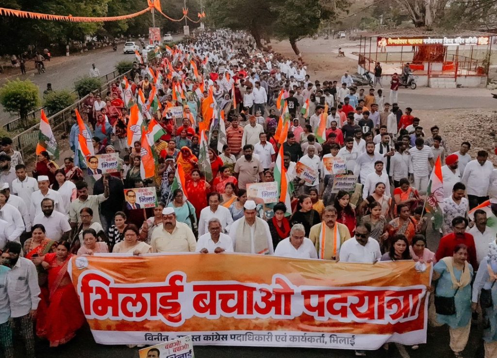 भिलाई/भिलाई बचाओ आंदोालन के द्वितीय चरण के तहत भिलाई नगर विधायक देवेन्द्र समेत टाउनशिपवासियों ने बीएसपी सेल प्रबंधन के खिलाफ सिविक सेंटर पार्किंग से 25 मिलियन सेक्टर-5 चैक तक 1000 कदम की मौन पदयात्रा की। 24 दिसंबर 2025 को बीएसपी प्रबंधन के अधिकारियों से हुई चर्चा अनुसार लोंगों की हित से जु़ड़े हुए विषयों को लेकर कलेक्टर के नाम ज्ञापन सौंपा गया। विधायक ने बीएसपी प्रबंधन को चेतावनी देते हुए कहा कि यदि 30 दिन के अंदर प्रबंधन जनहित में निर्णय नहीं लेता है,तो इस्पात भवन का घेराव करने से पीछे नहीं हटेंगे।