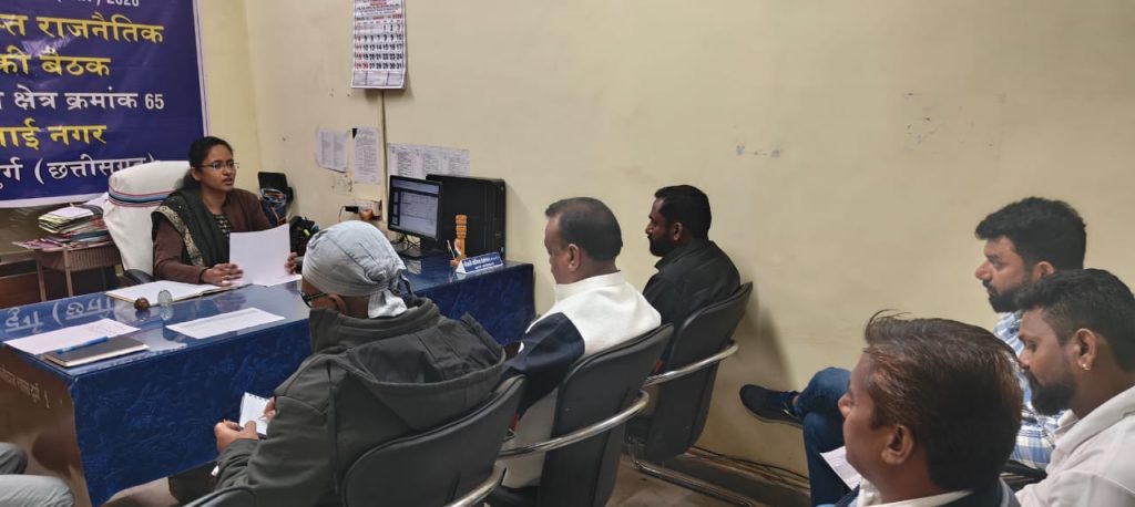 दुर्ग/निर्वाचक नामावलियों के विशेष गहन पुनरीक्षण (एसआईआर) अर्हता 01 जनवरी 2026 के संबंध में 06 जनवरी 2026 को जिले के समस्त विधानसभा 62- पाटन, 63- दुर्ग ग्रमीण, 64 दुर्ग शहर, 65- भिलाई नगर, 66- वैशाली नगर, 67- अहिवारा के निर्वाचक रजिस्ट्रीकरण अधिकारियों की अध्यक्षता में मान्यता प्राप्त राजनीतिक दलों की बैठक समस्त निर्वाचक रजिस्ट्रीकरण अधिकारियों द्वारा आयोजित की गई। जिले के समस्त विधानसभा 62 पाटन, 63- दुर्ग ग्रामीण, 64- दुर्ग शहर, 65- भिलाई नगर, 66- वैशाली नगर, 67- अहिवारा के निर्वाचक रजिस्ट्रीकरण अधिकारी के द्वारा बैठक में उपस्थित मान्यता प्राप्त राजनीतिक दलों के प्रतिनिधियों को मुख्य निर्वाचन पदाधिकारी, छग रायपुर के निर्देश के परिपालन में निर्वाचक नामावलियों का विशेष गहन पुनरीक्षण (एसआईआर) अर्हता तिथि 01 जनवरी 2026 के संदर्भ में दावा आपत्तियों की सूची साझा किये जाने एवं विशेष गहन पुनरीक्षण के संबंध में जानकारी साझा किये जाने साप्ताहिक बैठक आयोजित की गई। बैठक में उपस्थित राजनैतिक दलों के प्रतिनिधियों को कण्डिकावार जानकारी उपलब्ध कराई गयी।