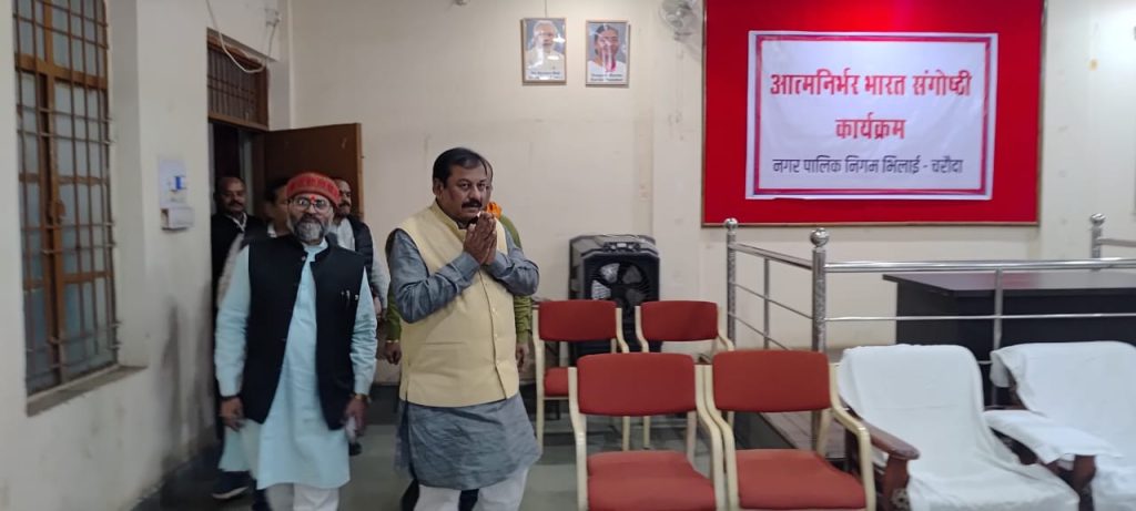 चरौदा/चरौदा-भिलाई में एक भव्य एवं प्रेरणादायक संगोष्ठी कार्यक्रम का आयोजन किया गया। इस महत्वपूर्ण अवसर पर दुर्ग लोकसभा के लोकप्रिय सांसद विजय बघेल मुख्य अतिथि के रूप में उपस्थित रहे। कार्यक्रम में भाजपा जिलाध्यक्ष पुरुषोत्तम देवांगन, महिला मोर्चा जिलाध्यक्ष श्रीमती स्वीटी कौशिक सहित शशिकांत बघेल, ब्रजेश बिचपुरीया, श्रीमती पूनम शुक्ला,विपिन चंद्राकर, श्यामा सुंदर जायसवाल, श्रीमती चंद्रकांता मांडले, वरुण यादव , बालमुकुंद वर्मा, हुपेंद्र चंद्रा, रामखिलावन वर्मा ,समीर अग्रवाल,सहित अनेक जनप्रतिनिधि एवं गणमान्य अतिथि विशेष रूप से उपस्थित रहे। संगोष्ठी में नगर पालिका निगम के जनप्रतिनिधियों के साथ-साथ विभिन्न सामाजिक संगठनों के पदाधिकारी, बुद्धिजीवी वर्ग, व्यापारी, युवा कार्यकर्ता एवं बड़ी संख्या में नगरवासी शामिल हुए। कार्यक्रम का उद्देश्य आत्मनिर्भर भारत अभियान के महत्व को जन-जन तक पहुँचाना तथा स्थानीय स्तर पर इसके प्रभावी क्रियान्वयन को प्रोत्साहित करना रहा। कार्यक्रम को संबोधित करते हुए सांसद विजय बघेल ने कहा कि प्रधानमंत्री नरेंद्र मोदी के सशक्त नेतृत्व में आत्मनिर्भर भारत का सपना देश को आर्थिक, सामाजिक एवं तकनीकी रूप से मजबूत बनाने की दिशा में एक ऐतिहासिक पहल है। उन्होंने ‘वोकल फॉर लोकल’ के मंत्र को अपनाने का आह्वान करते हुए स्थानीय उत्पादों को बढ़ावा देने, स्वदेशी वस्तुओं के उपयोग, युवाओं को स्वरोजगार से जोड़ने तथा सूक्ष्म, लघु एवं मध्यम उद्योगों (MSME) को सशक्त बनाने पर विशेष जोर दिया। संगोष्ठी के दौरान उपस्थित विशेषज्ञ वक्ताओं ने आत्मनिर्भर भारत के विभिन्न आयामों पर विस्तार से अपने विचार साझा किए। उन्होंने केंद्र सरकार की विभिन्न योजनाओं जैसे स्टार्टअप इंडिया, मुद्रा योजना, महिला सशक्तिकरण एवं कौशल विकास कार्यक्रमों के माध्यम से आम जनता, महिलाओं, युवाओं और उद्यमियों को आत्मनिर्भर बनाने की दिशा में हो रहे सकारात्मक प्रयासों की जानकारी दी। कार्यक्रम के समापन अवसर पर नगर पालिका निगम चरौदा की ओर से मुख्य अतिथि एवं समस्त गणमान्य अतिथियों का सम्मान किया गया। उपस्थित नागरिकों ने संगोष्ठी को अत्यंत प्रेरणादायक बताते हुए आत्मनिर्भर भारत के संकल्प को जन-जन तक पहुँचाने और इसे अपने जीवन में अपनाने का दृढ़ संकल्प लिया।