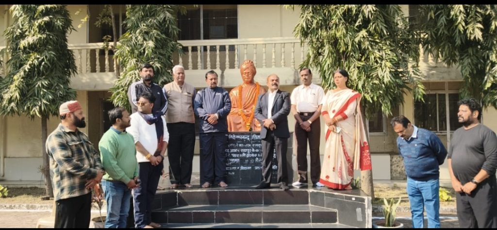 भिलाई/स्वामी विवेकानंद जी की जयंती के पावन अवसर पर लोकप्रिय सांसद विजय बघेल ने कल्याण कॉलेज भिलाई ,साइंस कॉलेज दुर्ग तथा विवेकानंद चौक दुर्ग में स्वामी विवेकानंद जी की प्रतिमा पर माल्यार्पण कर विनम्र अभिवादन किया। इस अवसर पर विजय बघेल ने कहा कि स्वामी विवेकानंद जी ने अपने तेजस्वी विचारों, अदम्य राष्ट्रभक्ति और आध्यात्मिक चेतना के माध्यम से भारत को विश्व मंच पर गौरव दिलाया। उनका यह संदेश कि “उठो, जागो और लक्ष्य प्राप्ति तक रुको मत” आज भी देश के युवाओं के लिए मार्गदर्शक मंत्र है। हम सभी का दायित्व है कि हम उनके विचारों को आत्मसात करते हुए एक सशक्त, आत्मनिर्भर और सांस्कृतिक रूप से समृद्ध भारत के निर्माण में योगदान दें। स्वामी विवेकानंद जी का जीवन और दर्शन सदैव राष्ट्र निर्माण की प्रेरणा देता रहेगा।