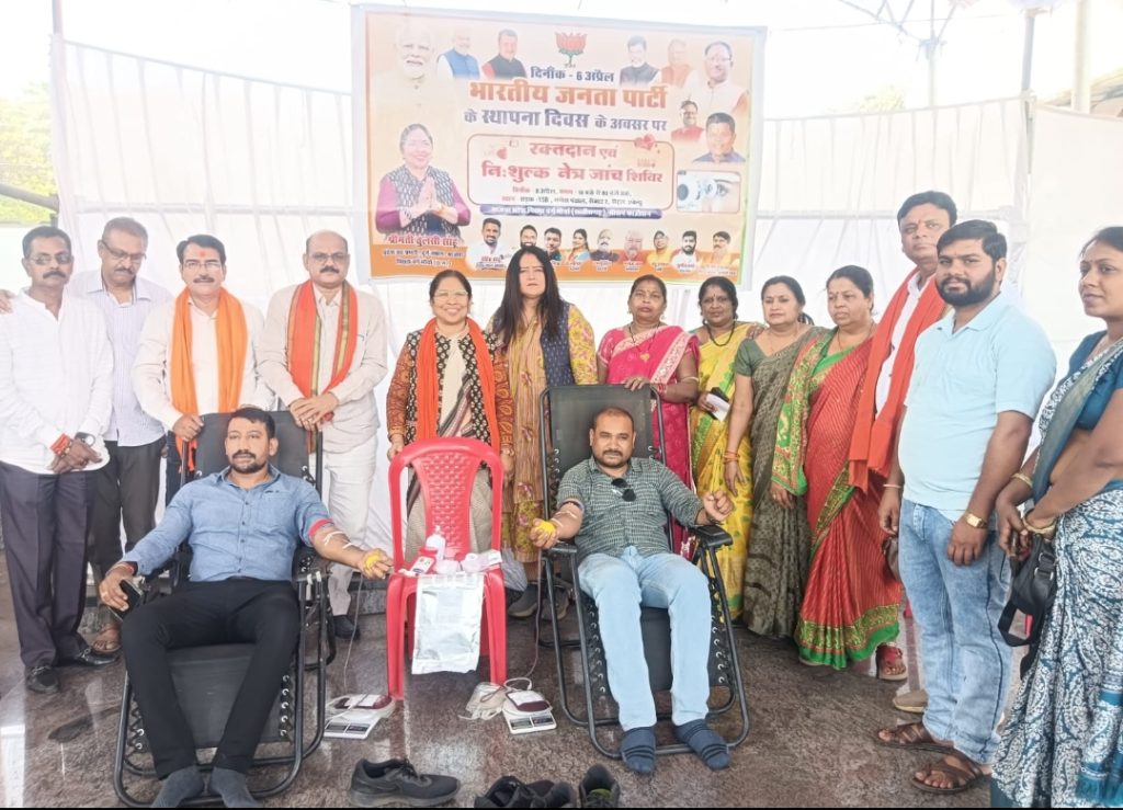 भिलाई/आज भाजपा प्रदेश ओबीसी मोर्चा के निर्देश पर दुर्ग संभाग की प्रदेश सह प्रभारी श्रीमती तुलसी साहू के नेतृत्व में भाजपा पूरब मंडल के गणेश पंडाल, सेंट्रल एवेन्यू,सेक्टर-2 में रक्तदान एवं निशुल्क नेत्र जांच शिविर का आयोजन किया गया। ज्ञात हो कि भारतीय जनता पार्टी का 47 वा स्थापना दिवस पूरे देश में धूमधाम से मनाया गया इसी परिपेक्ष्य में भाजपा अन्य पिछड़ा वर्ग मोर्चा के द्वारा निशुल्क शिविर का आयोजन किया गया इसमें बड़ी संख्या में स्थानीय नागरिकों एवं भाजपा कार्यकर्ताओं ने भाग लिया। इस शिविर में सभी लोगों ने बढ़चढ़ कर हिस्सा लिया तथा अनेक रक्तदाताओं ने रक्तदान किया। इस मोर पर रक्तदान करने वाले रक्तदाताओं को मुफ्त हेलमेट देकर सम्मानित किया गया। सैकड़ो की संख्या में पहुंचे स्थानीय निवासियों ने अपनी आंखों का मुक्त जांच करवाया। इस दौरान उपस्थित रहने वालों में प्रमुख रूप से बिजेंद्र सिंह, स्वीटी कौशिक,दिनेश सिंह, रोहित साहू, जे ललिता,नेहा साहू,निर्मल वर्मा,श्रीनिवास रायडू,सूर्यकांत पांडे,संतोष देवांगन,विनय सिंह,उपासना साहू,हरीश साहू,मनोज साव, विजय शुक्ला,दिनेश लोहिया, सुदेश मिश्रा,श्रीनिवास राव, गगन साहू,अनुपमा शुक्ला, सुगंधी सोनी, अबुजा देवी,महेंद्र प्रताप सिंह और ईश्वर चंद्र त्रिपाठी आदि उपस्थित रहे।