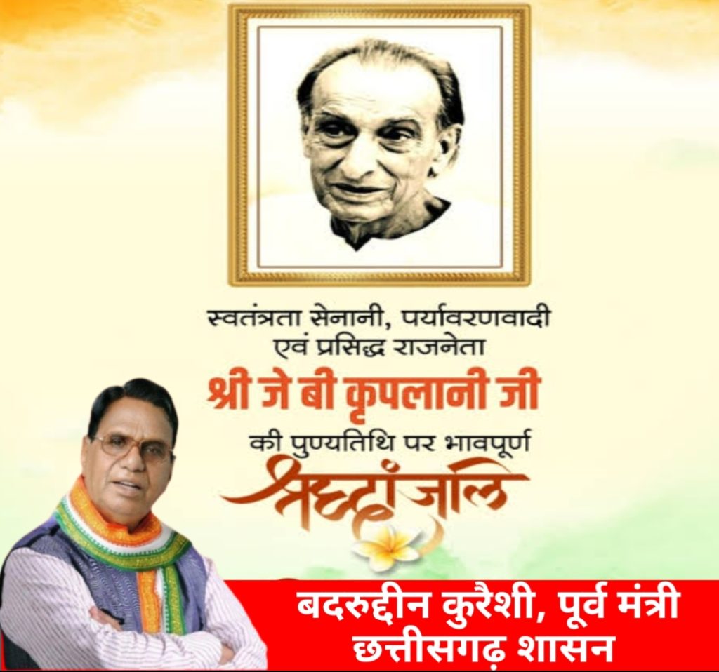 भिलाई/छत्तीसगढ़ के पूर्व राज्य मंत्री बदरुद्दीन कुरैशी ने कहा कि, 10 अप्रैल को आचार्य जेबी. कृपलानी भारत के स्वतंत्रता संग्राम के प्रमुख नेताओं में से एक थे और इंडियन नेशनल कांग्रेस के महत्वपूर्ण स्तंभ रहे । उनका जन्म 1888 में हुआ था और वह एक प्रसिद्ध शिक्षक समाजसेवी तथा स्वतंत्रता सेनानी थे उन्होंने महात्मा गांधी के साथ मिलकर कई आंदोलन में भाग लिया जिन में असहयोग आंदोलन और भारत छोड़ो आंदोलन प्रमुख है । 1947 में वे कांग्रेस के अध्यक्ष भी बने, जब भारत को स्वतंत्रता प्राप्त हुए । उन्होंने सत्य, अहिंसा और लोकतांत्रिक मूल्यों को बढ़ावा दिया। भारतीय राष्ट्रीय कांग्रेस का योगदान भारत की आजादी में अत्यंत महत्वपूर्ण रहा है । कांग्रेस की स्थापना 1885 में हुई और इसमें देश भर के लोगों को एकजुट कर ब्रिटिश शासन के खिलाफ संघर्ष किया । महात्मा गांधी, जवाहरलाल नेहरू और सरदार वल्लभभाई पटेल जैसे महान नेताओं के नेतृत्व में कांग्रेस ने स्वतंत्रता आंदोलन को दिशा दिया । आजादी के बाद भी कांग्रेस ने देश के विकास, संविधान निर्माण और लोकतंत्र को मजबूत बनाने में महत्वपूर्ण भूमिका निभाई और भारत को आजाद दिलाने में महत्वपूर्ण योगदान था।