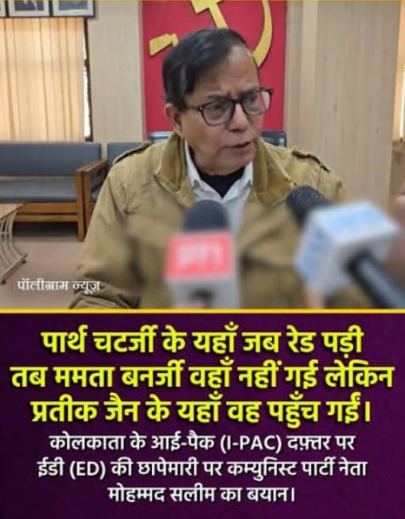 इसलिए, कोलकाता में इंडियन पॉलिटिकल एक्शन कमेटी (आई-पैक) नाम के एक वोट व्यवसायी के परिसर में जो कुछ भी हुआ, वह पुराने नाटक का एक नया संस्करण है। एक तरफ, ऐसी कार्यवाहियों से लोग भ्रष्टाचार के खिलाफ सज़ा वाले एक्शन का भ्रम पालने का शिकार हो जाते हैं, हालांकि अब तक आरोपियों का कुछ नहीं बिगड़ा है। इस समय की गई कार्यवाही का दूसरा पहलू यह है कि यह लोगों के असली मुद्दों को दबा देती है। जब बंगाल की जनता अपनी रोज़ी-रोटी से जुड़े असली मुद्दों पर लड़ने के मूड में है, तभी ईडी कोलकाता में मौके पर पहुँच गई। बंगाल में असली मुद्दे क्या हैं? भारी बेरोज़गारी एक मुद्दा है। बड़े पैमाने पर पलायन एक मुद्दा है। पश्चिम बंगाल के परेशान प्रवासी मज़दूरों दूसरी जगहों पर अपने जिंदा रहने के लिए संघर्ष कर रहे हैं, लेकिन उन्हें परेशान किया जा रहा है, तंग किया जा रहा है और यहाँ तक कि उनकी हत्या भी की जा रही है। जो एसआईआर चल रहा है, वह साफ तौर पर असली मतदाताओं को बाहर निकालने की कारगुज़ारी है, जिसमें असमानताओं के बारे में अजीब दावे किए जा रहे हैं। मतदाता सूची को ठीक करने के नाम पर चलाई जा रही ऐसी गलत प्रक्रिया में हाशिये पर पड़े, गरीब और कमज़ोर तबके के लोग बलि का बकरा बन रहे हैं। अदालत के बार-बार फैसलों के बावजूद मनरेगा में 100 दिनों के काम की मज़दूरी अभी भी नहीं दी जा रही है। ग्रामीण गरीब कामकाजी महिलाएँ सूक्ष्म वित्त (माइक्रोफाइनेंस) कंपनियों के एजेंटों का सामना करते हुए बहुत परेशानी में हैं। इन सब पर पर्दा डालने के लिए, भ्रष्टाचार के खिलाफ ऐसी जांच-पड़ताल की इस कार्रवाई का नाटक रचा गया है, ताकि राजनीतिक ध्रुवीकरण को मज़बूत किया जा सके।छापामारी के दौरान दस्तावेजों को ज़ब्त करके पश्चिम बंगाल की मुख्यमंत्री और राज्य पुलिस ने एक आपराधिक काम किया है। इसी प्रकार की पिछली घटनाओं को याद करें। आरोप है कि मुख्यमंत्री ने भवानीपुर के एक पुलिस स्टेशन से बदमाशों को छुड़वाया था। आर जी कर अस्पताल में सबूतों को नष्ट करने के लिए टीएमसी के गुंडों ने तोड़फोड़ की थी। राजीव कुमार को पुलिस कमिश्नर के उसके कार्यकाल के दौरान सीबीआई की पूछताछ से बचाने के लिए मुख्यमंत्री अपने काफिले के साथ सड़कों पर थीं। उसी पटकथा पर बार-बार तमाशा किया जा रहा है। यह सब राजनीतिक हंगामा खड़ा करने के लिए किया जा रहा है। बहरहाल, ऐसी तमाशेबाजी को अब कोई तवज्जो नहीं मिलेगी, न ही लोग इस पर विश्वास करेंगे। जब ईडी एक निजी कंपनी की तलाशी ले रही थी, तो राज्य पुलिस ने आकर दस्तावेज छीने और उन्हें एक ऐसी गाड़ी में लादा, जो न तो पुलिस की थी और न ही सरकार की। राज्य पुलिस के अधिकारियों, जिसमें राज्य पुलिस के महानिदेशक और कोलकाता के पुलिस कमिश्नर भी शामिल थे, के ऐसे गैर-कानूनी काम
